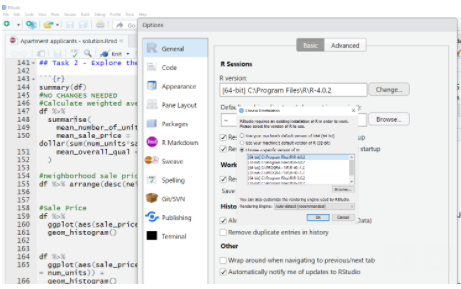 Next you need to set the R library. R code is organized into libraries. You want to use the same code that will be on the Prometric Computers. It would require installing older versions of libraries. Change your R library to the one which was included within the Modules of SOA.