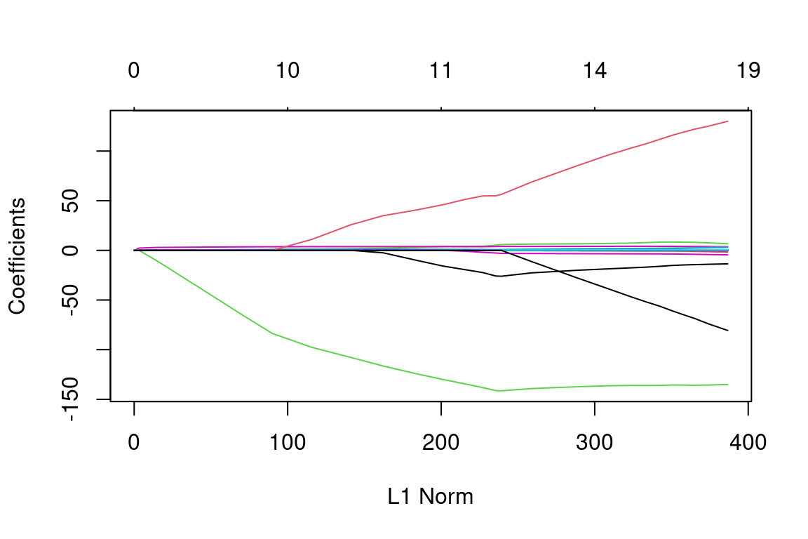 In ISLR, Hastie et al show that this results in coefficients being forced to be exactly 0. This is extremely useful because it means that by changing \(\lambda\), we can select how many variables to use in the model.